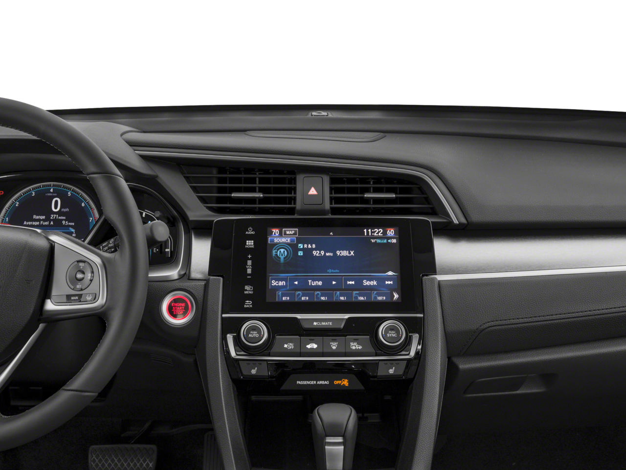 - Radio: 450-Watt AM/FM/HD/SiriusXM Audio System -inc: 9 speakers, subwoofer, 7-inch display w/high-resolution WVGA (800x480) electrostatic touch-screen and customizable feature settings, Honda Satellite-Linked Navigation System w/voice recognition, Honda HD digital traffic, turn-by-turn directions, compass and Song By Voice (SBV), Bluetooth HandsFreeLink, Bluetooth streaming audio, radio data system (RDS), speed-sensitive volume control (SVC), 1.5-amp USB smartphone/audio interface in front, 1.0-amp USB audio interface port in center console, HondaLink, Apple CarPlay integration, Android Auto integration, Pandora compatibility, SMS text message function, illuminated steering wheel-mounted audio controls and navigation controls and body-colored fin-type roof-mounted antenna