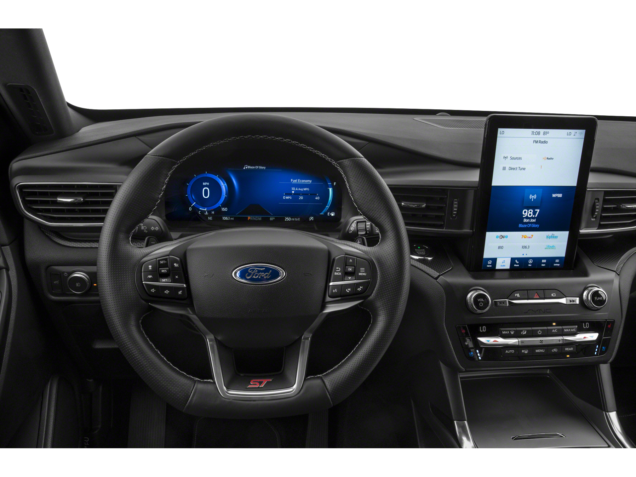 4WD, 1st Row Heated Seats, 20 Machined Aluminum w/Painted Pockets Wheels, 3.58 Non-Limited-Slip Rear Axle Ratio, 3rd row seats: bench, 4-Wheel Disc Brakes, 6 Speakers, ABS brakes, Alloy wheels, AM/FM radio: SiriusXM, AM/FM Stereo, Auto High-beam Headlights, Automatic temperature control, Brake assist, Bumpers: body-color, Delay-off headlights, Driver door bin, Driver vanity mirror, Dual front impact airbags, Dual front side impact airbags, Electronic Stability Control, Emergency communication system: SYNC 3 911 Assist, Exterior Parking Camera Rear, FordPass Connect, Four wheel independent suspension, Front anti-roll bar, Front Bucket Seats, Front Center Armrest, Front dual zone A/C, Front fog lights, Front reading lights, Fully automatic headlights, Heated door mirrors, Heated front seats, Heated steering wheel, Illuminated entry, Knee airbag, Leather steering wheel, Low tire pressure warning, Memory seat, Occupant sensing airbag, Outside temperature display, Overhead airbag, Overhead console, Panic alarm, Passenger door bin, Passenger vanity mirror, Power door mirrors, Power driver seat, Power Liftgate, Power passenger seat, Rear air conditioning, Rear anti-roll bar, Rear reading lights, Rear window wiper, Remote keyless entry, Security system, SelectShift Capability w/Paddle Shifters, Speed control, Speed-sensing steering, Speed-Sensitive Wipers, Split folding rear seat, Spoiler, Sport steering wheel, Steering wheel mounted audio controls, SYNC 3 Communications & Entertainment System, SYNC 3/Apple CarPlay/Android Auto, Tachometer, Telescoping steering wheel, Tilt steering wheel, Traction control, Trip computer, Variably intermittent wipers, Ventilated front seats.2022 Ford Explorer STClean CARFAX.