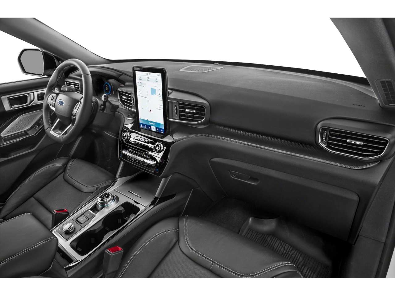 4WD, 10.1 LCD Capacitive Portrait Touchscreen, 110V/150W AC Power Outlet, 2 Additional Speakers, 20 Machined Aluminum w/Painted Pockets Wheels, 3.58 Non-Limited-Slip Rear Axle Ratio, 360-Degree Camera w/Split View, 3rd row seats: bench, 4-Wheel Disc Brakes, 4G LTE Wi-Fi Hotspot Credit, 6 Speakers, ABS brakes, Alloy wheels, AM/FM radio: SiriusXM, Auto High-beam Headlights, Auto-Dimming Rearview Mirror (Interior), Automatic temperature control, Brake assist, Bumpers: body-color, Compass, Delay-off headlights, Driver vanity mirror, Dual front impact airbags, Dual front side impact airbags, Electronic Stability Control, Emergency communication system: SYNC 3 911 Assist, Equipment Group 401A, Evasive Steering Assist, Exterior Parking Camera Rear, Ford Co-Pilot360 Assist+, Four wheel independent suspension, Front anti-roll bar, Front Bucket Seats, Front Center Armrest, Front dual zone A/C, Front fog lights, Front Parking Sensors, Front Rain-Sensing Wipers, Front reading lights, Fully automatic headlights, Heated door mirrors, Heated front seats, Heated steering wheel, Illuminated entry, Intelligent Adaptive Cruise Control, Knee airbag, Leather Htd/Ventilated Sport Captain's Chairs, Leather steering wheel, Low tire pressure warning, Memory Driver's Seat, Occupant sensing airbag, Outside temperature display, Overhead airbag, Overhead console, Panic alarm, Passenger door bin, Performance Front & Rear Brakes, Power door mirrors, Power Liftgate, Power passenger seat, Power Tilt/Telescoping Steering Column, Radio: B&O Sound System by Bang & Olufsen, Rear air conditioning, Rear anti-roll bar, Rear window defroster, Rear window wiper, Remote keyless entry, Reverse Brake Assist, Second Row Heated Seats, Security system, SelectShift Capability w/Paddle Shifters, Sideview Mirrors w/Gloss Black Caps, Speed control, Speed Sign Recognition, Speed-sensing steering, Speed-Sensitive Wipers, Split folding rear seat, Spoiler, Sport steering wheel, ST High Package, ST Street Pack, Steering wheel mounted audio controls, SYNC 3/Apple CarPlay/Android Auto, Tachometer, Technology Package, Telescoping steering wheel, Third Row PowerFold (Folds Flat), Traction control, Twin Panel Moonroof, Variably intermittent wipers, Ventilated front seats, Voice-Activated Touchscreen Navigation System, Wheels: 21 Aluminum.2023 Ford Explorer STClean CARFAX.