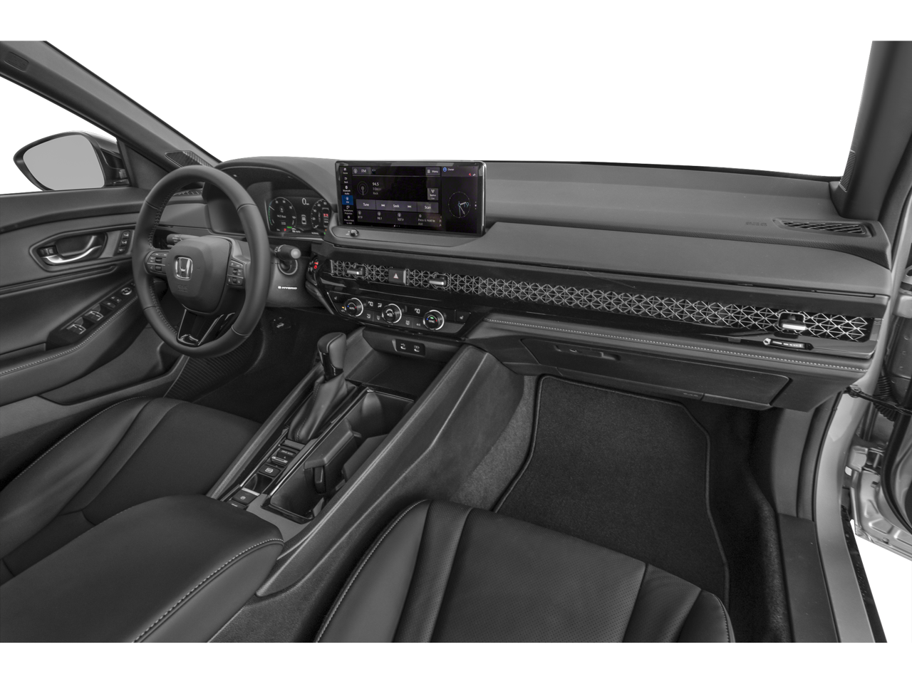 2.0L 16V DOHC, 4-Wheel Disc Brakes, 8 Speakers, ABS brakes, Adaptive Cruise Control: Adaptive Cruise Control (ACC) with Low-Speed Follow, Alloy wheels, AM/FM radio, Apple CarPlay/Android Auto, Auto High-beam Headlights, Automatic temperature control, Blind Spot Information (BSI) System warning, Brake assist, Bumpers: body-color, Delay-off headlights, Driver door bin, Driver vanity mirror, Dual front impact airbags, Dual front side impact airbags, Electronic Stability Control, Emergency communication system: HondaLink, Exterior Parking Camera Rear, Four wheel independent suspension, Front anti-roll bar, Front Bucket Seats, Front Center Armrest, Front dual zone A/C, Front reading lights, Fully automatic headlights, Heated Front Bucket Seats, Heated front seats, Illuminated entry, Knee airbag, Lane departure: Lane Keeping Assist System (LKAS) active, Leather Shift Knob, Leather steering wheel, Leather-Trimmed Seat Trim, Memory seat, Outside temperature display, Overhead console, Panic alarm, Passenger door bin, Passenger vanity mirror, Power door mirrors, Power driver seat, Power moonroof, Power passenger seat, Radio: 180-Watt Audio System, Rear anti-roll bar, Rear reading lights, Rear seat center armrest, Rear side impact airbag, Remote keyless entry, Security system, Speed control, Speed-sensing steering, Speed-Sensitive Wipers, Split folding rear seat, Spoiler, Steering wheel mounted audio controls, Telescoping steering wheel, Tilt steering wheel, Traction control, Trip computer, Variably intermittent wipers, Wheels: 19 x 8.5J Matte Berlina Black.2024 Honda Accord Hybrid Sport-L
